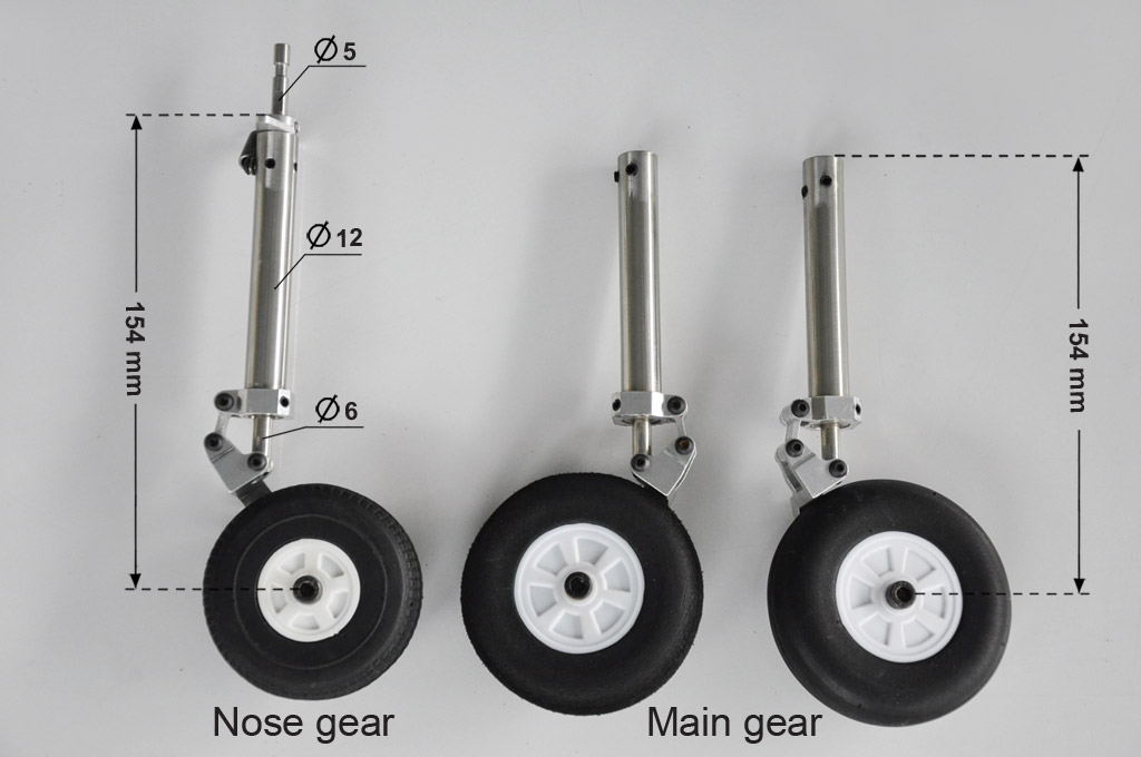 Oleo struts landing gear and Oleo strut nose gear (CNC Suspension Metal Struts) .Designed for the MIG-29 (BH153), but suitable for many other models.